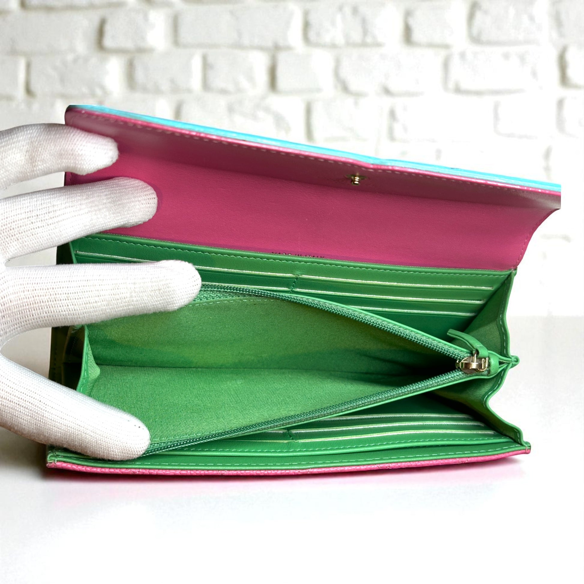 Interior - Buttery smooth leather - spring green, 12 card slots, 4 open slip pockets, zippered coin compartment